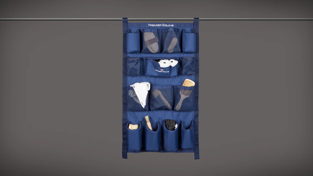 Ideell for bruk både i stallen, på stevner, på salrommet eller inne i en hestetransport. Den plassbesparende, vertikale designet bidrar til å opprettholde et ryddig og profesjonelt miljø. Sterke borrelåsstropper gjør det enkelt å feste, fjerne og flytte på, noe som gjør den til et allsidig valg for både hjemmebruk og stevner.